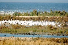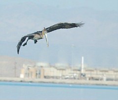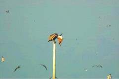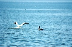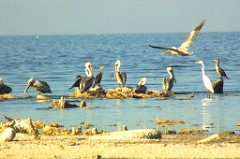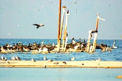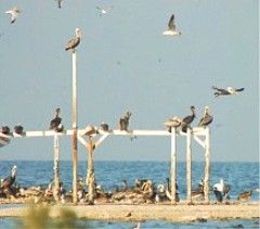 About 1/2 mile out on the Salton Sea there appeared to be a small island or sand bar.