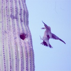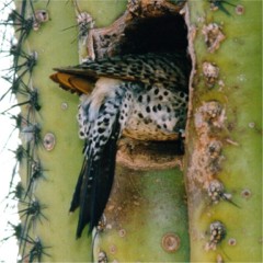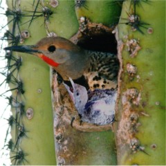 (not real live birds), in the nest cavity. The Gila Woodpecker at the nest cavity
