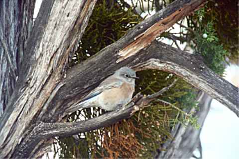 In the top of almost every tree were Western Scrub Jays packing away some kind of a pine goody.